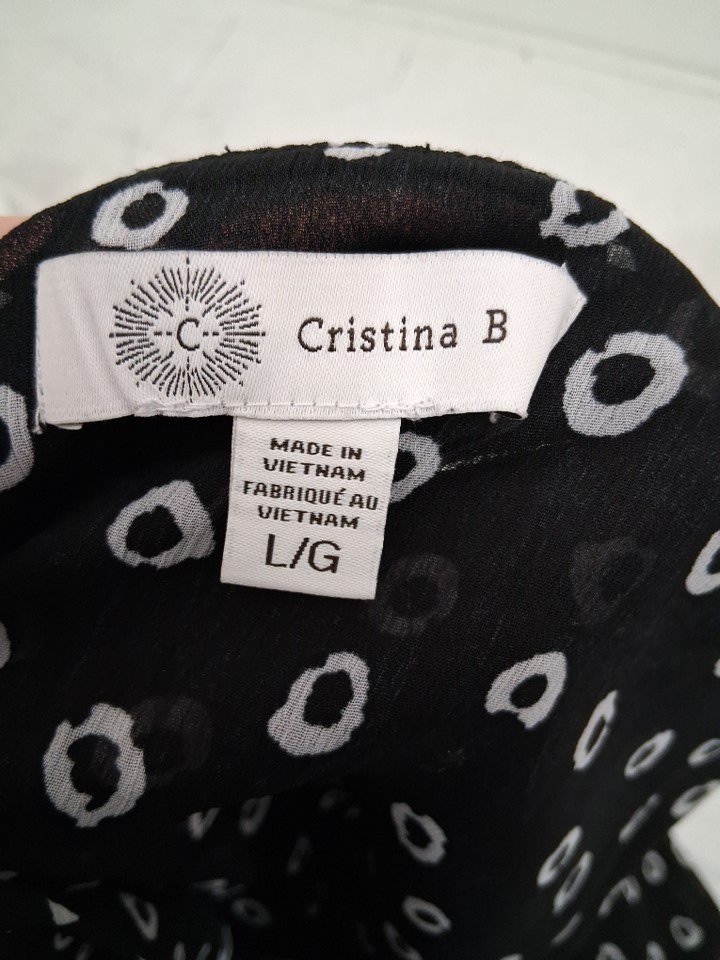Women's CRISTINA B LAYERED FLOWY LIGHTWEIGHT Blouse - LARGE - BLACK/white (STYLE: 1781012)