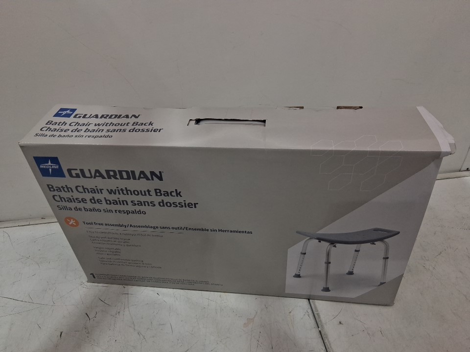 Medline Guardian Bath Chair without Back - 400LB Capacity - White/Grey (model: g2-201krx1)