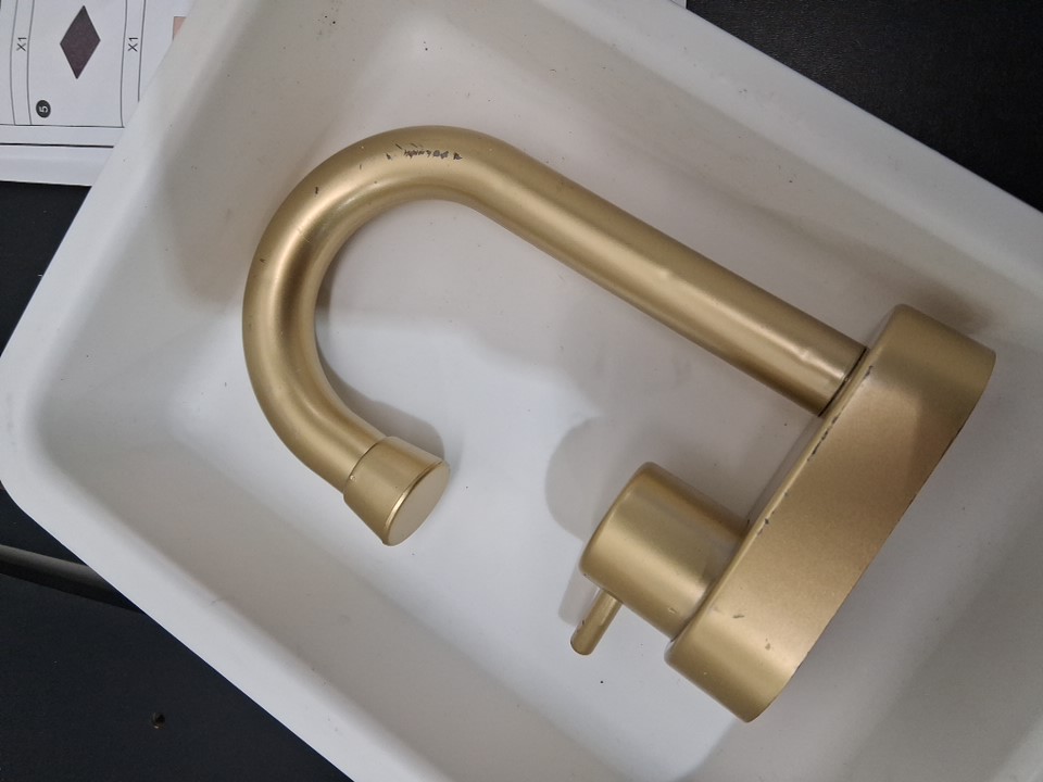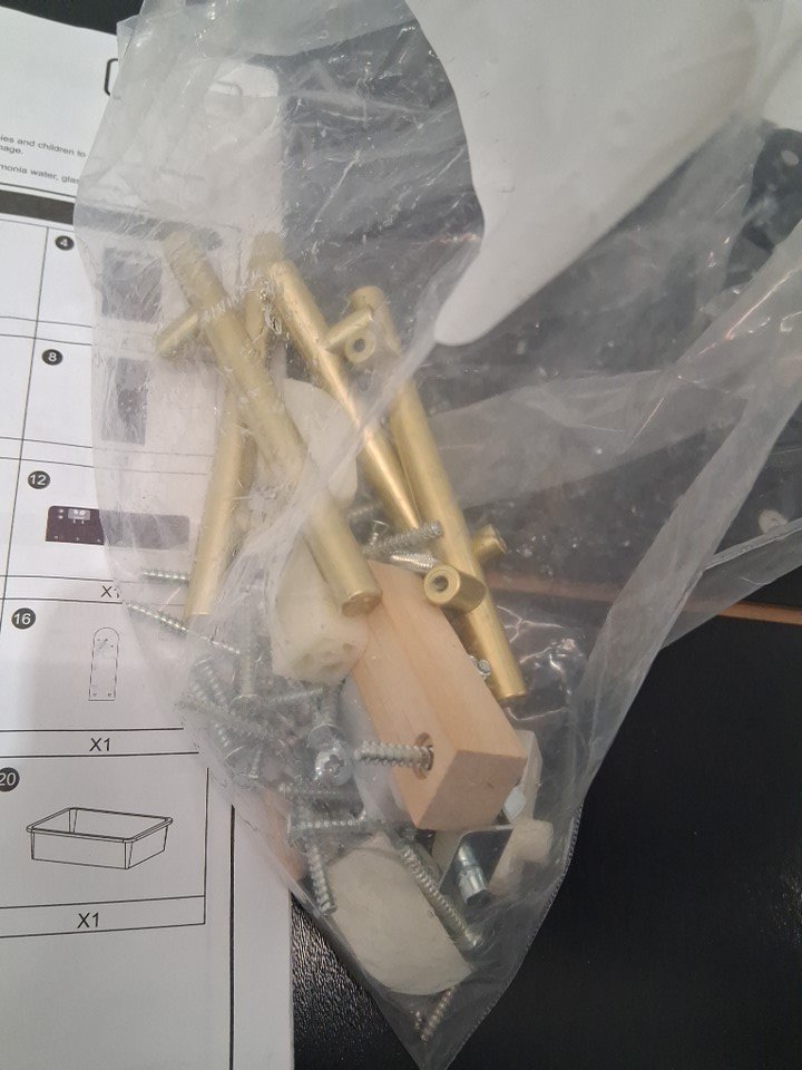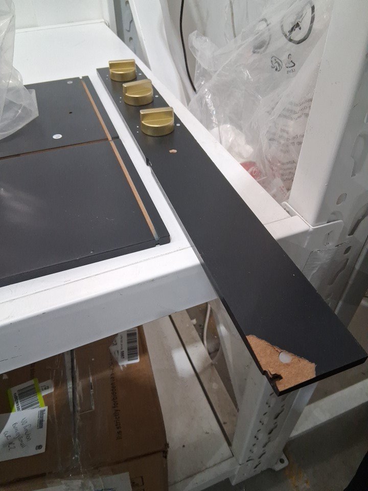 Wooden part damaged. scratches. May have basic hardware missing.