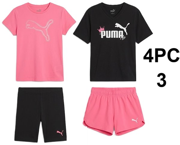 4PC GIRL'S PUMA SHORTS AND T-SHIRT SET - SIZE 3 - BLACK/PINK