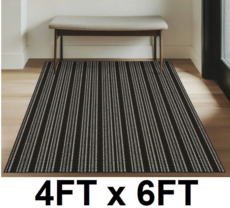 Baldosa Decorative Vestibule Rug - 4FT X 6FT - black/BEIGE