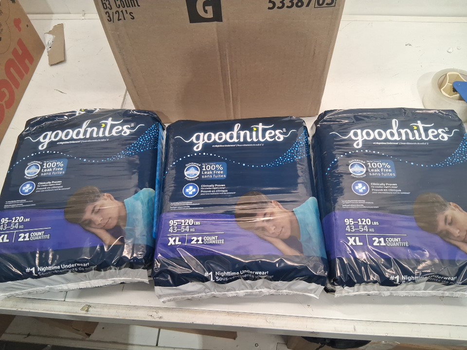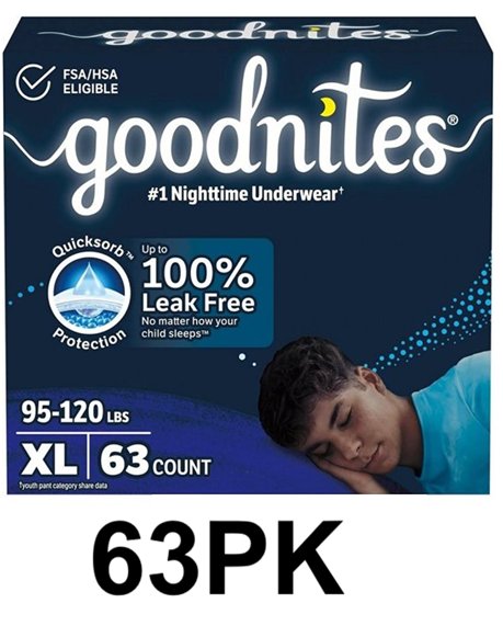 63pk BOY'S GOODNITES NIGHTTIME UNDERWEAR - EXTRA LARGE - (MODEL:53387)