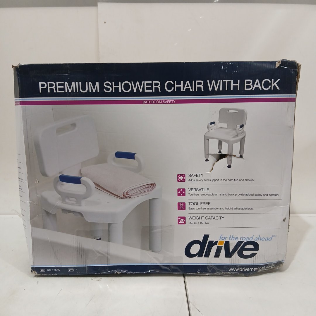 DRIVE MEDICAL PREMIUM SERIES SHOWER CHAIR WITH BACK AND ARMS - WHITE (model: rtl12505)