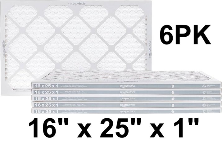 6PK amazon basics merv 5 ac furnace air filters - 16" x 25" x 1" - white