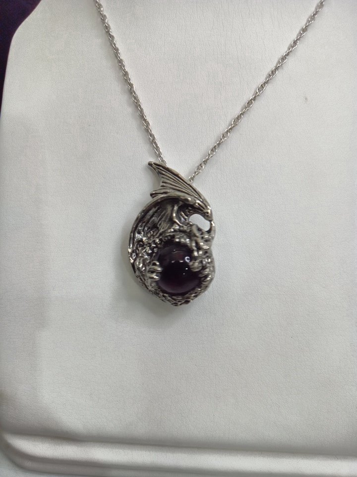 unisex unbranded dragon claw crystal pendant chain necklace - 20" chain/1" pendant - stainless steel/red.