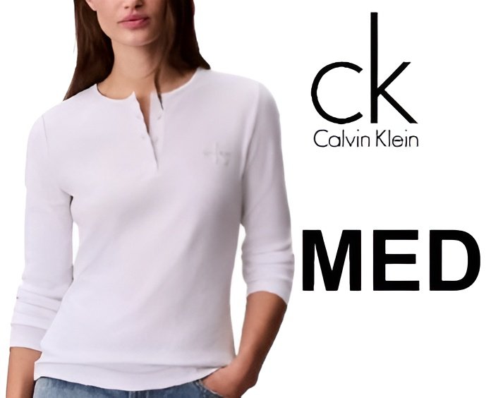 Women's Calvin Klein long sleeve henley shirt - medium - WHITE (style: 19077259)