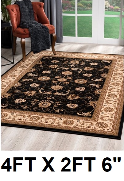 Traditional Persian Indoor Area Rug - 4FT X 2FT 6" - Black/Beige
