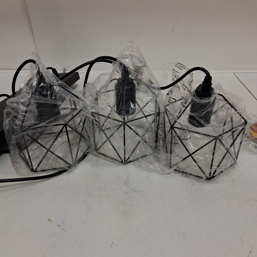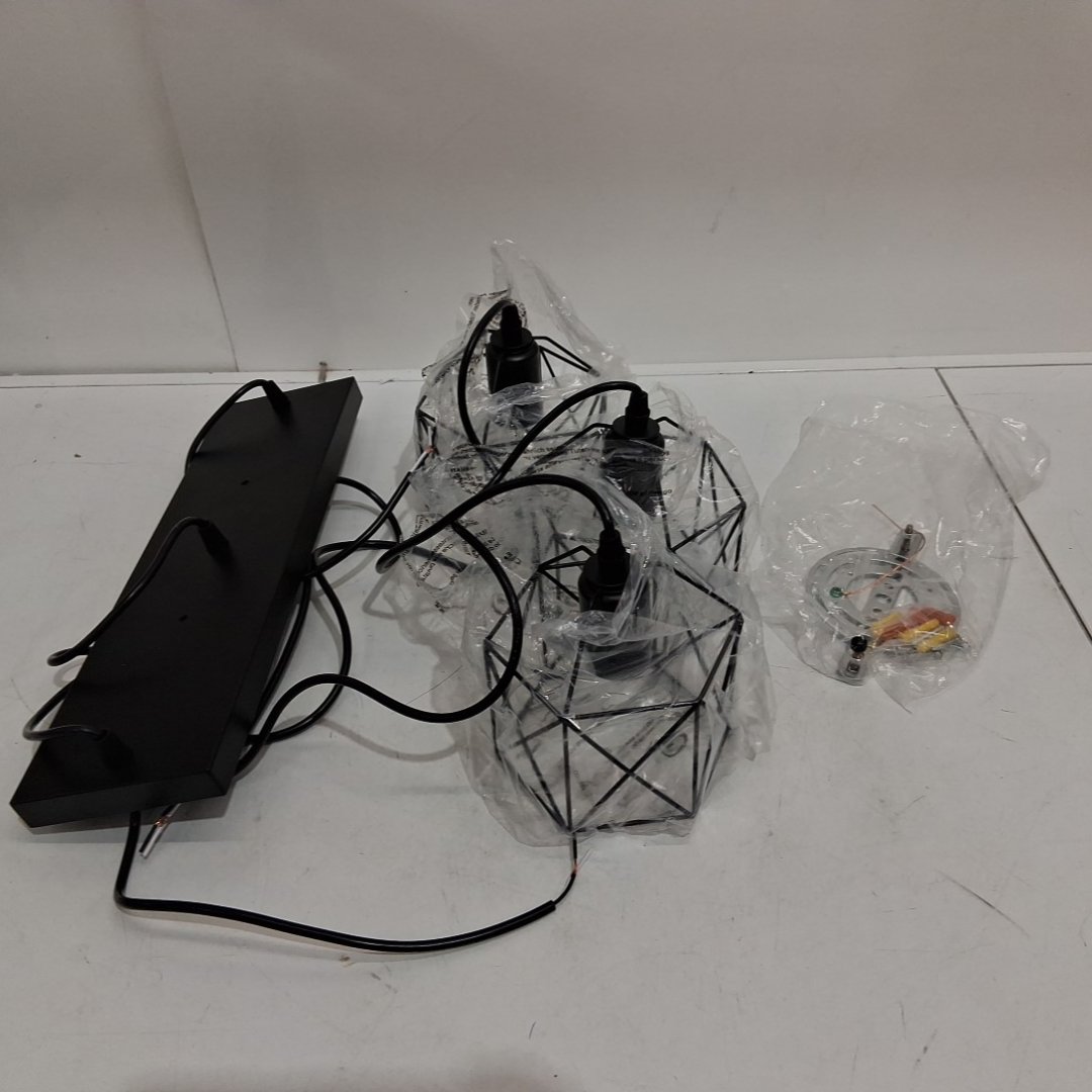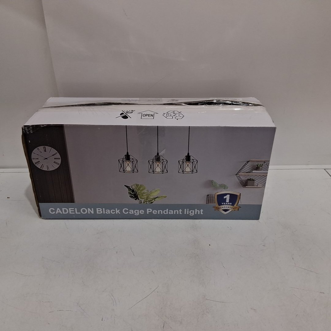 CADELON 3-LIGHT PENDANT LIGHTING FIXTURE - RUSTIC FARMHOUSE KITCHEN ISLAND DINING ROOM CAGE LAMP - BLACK