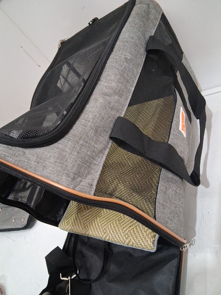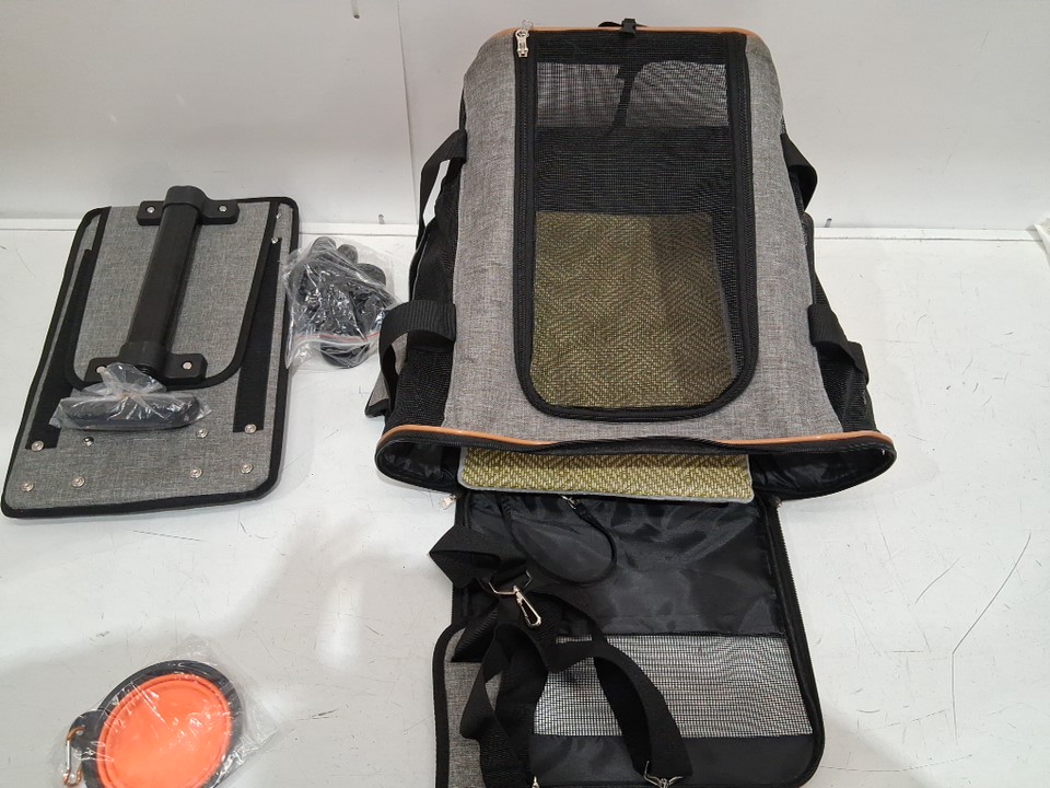 pet Carrier with Wheels, collapsible bowl, and strap Airline Approved - 22lbs cap - grey/black - (Model: JW-XB21212255(218))