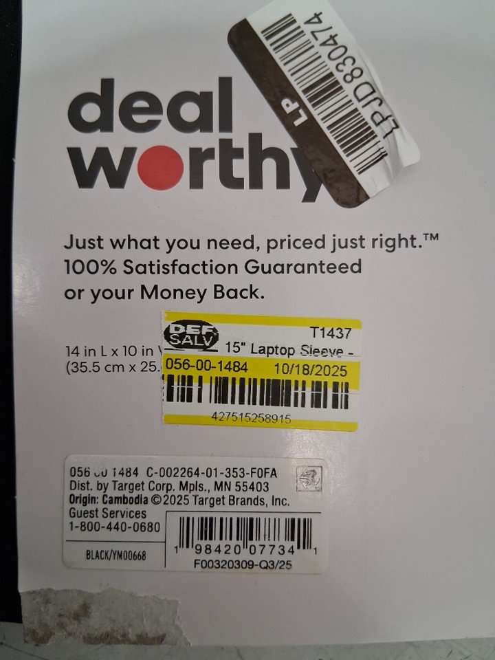 DealWorthy protective polyester laptop sleeve - fits up to 15" laptops - black (model: YM00668)