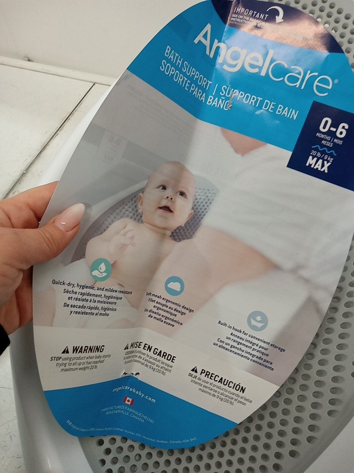 ANGELCARE BABY BATH SUPPORT - 0 to 6M/20LBS MAX - grey/white (MODEL: ‎ST-01-PK-CA / i000545)