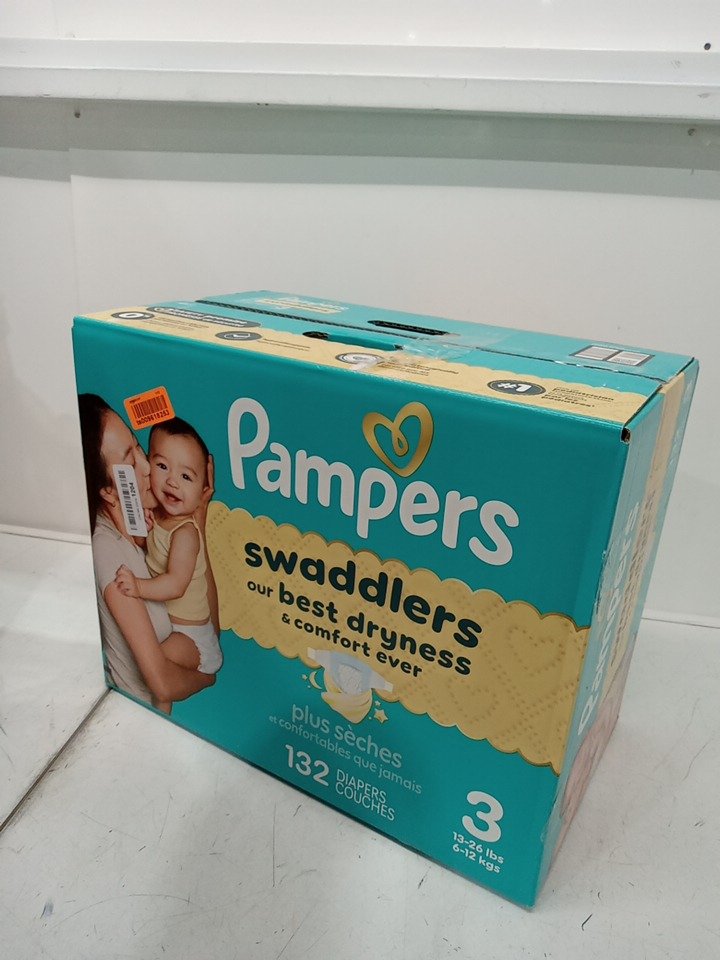 132PK PAMPERS SWADDLERS DIAPERS - SIZE 3 (13LB - 26LB)