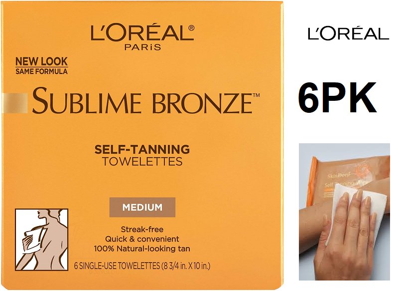 6pk l'oreal self tanning towelettes for body - medium