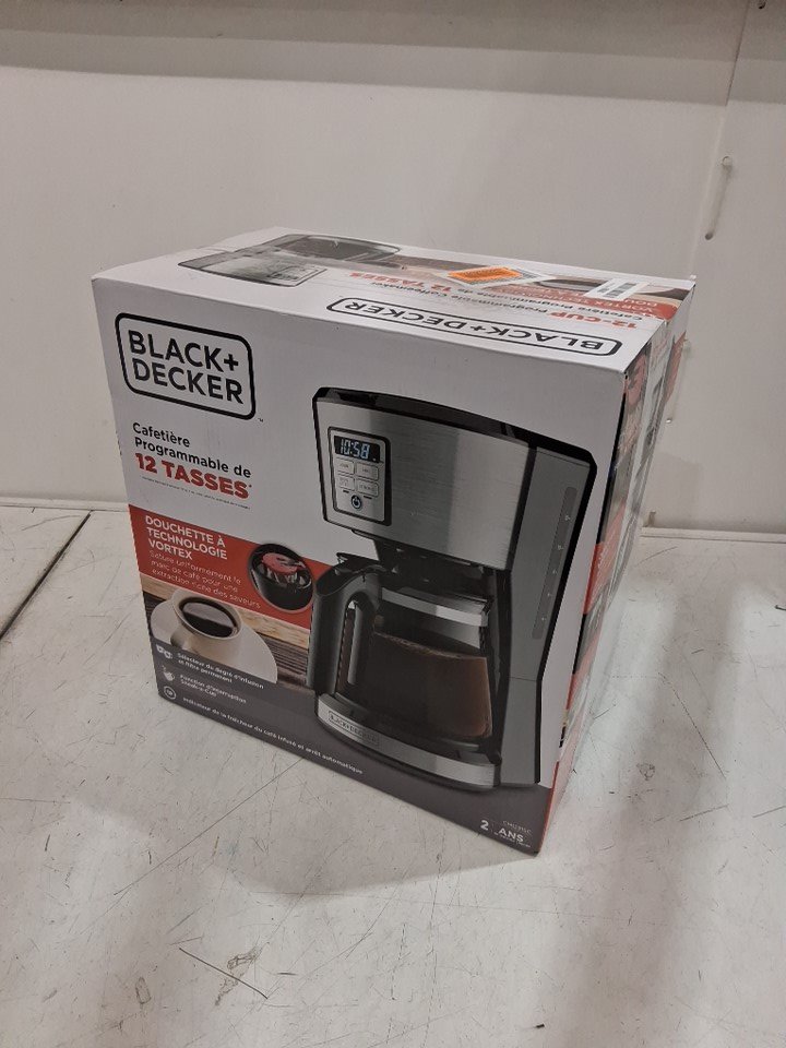 please note there are signs of prior use on the burner and where the filters go, as well as missing the coffee pot which can be replaced on the black + decker website Generic condition statement: *GENERIC CONDITION STATEMENT* This item has been handled/inspected, tested if needed by our listing staff to the best of their ability/knowledge and for an unknown reason arrived to our facility with an issue. This issue can either be a very minor/major cosmetic issue which most likely occurred during shipping such as a dent, indent, scuff, stain, scratch or knick. If not a cosmetic issue, it can be a function issue with the item itself or there could be certain parts missing to make the item complete from how it is sold originally. (See lister notes and photos attached of the issue stated as well as packaging condition)