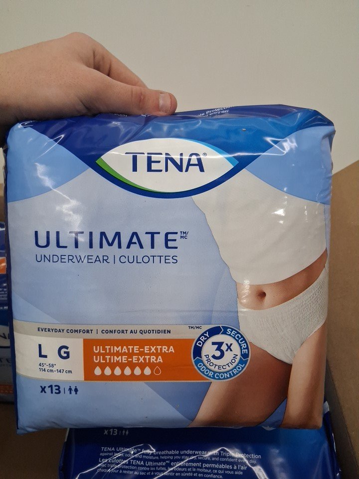 52pk adults UNISEX TENA ULTIMATE 3X EXTRA DRY & ODOR PROTECTION UNDERWEAR - LARGE (45" - 58") (MODEL: 072323 V-01)