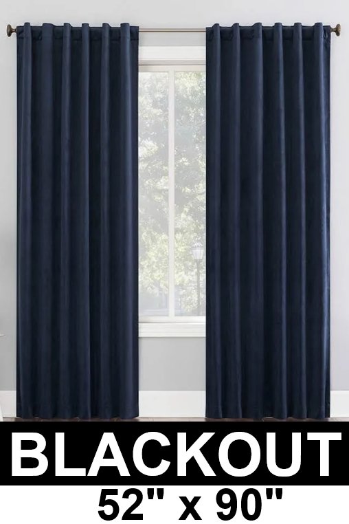 (2 PANEL) SUNBLK velvet Total Blackout Curtains - 52" x 90" (EACH) - navy marine (Model:3395105 )