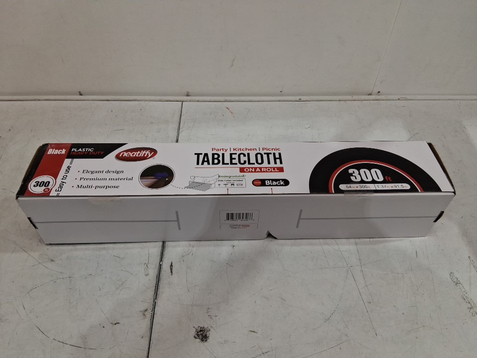 Neatiffy Disposable Plastic Table Cloth Roll With Slide Cutter - 54" x 300 Ft - BLACK