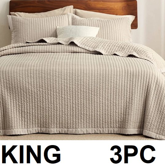3PC Bedsure corduroy pattern quilt set with pillow shams - King - Taupe/beige