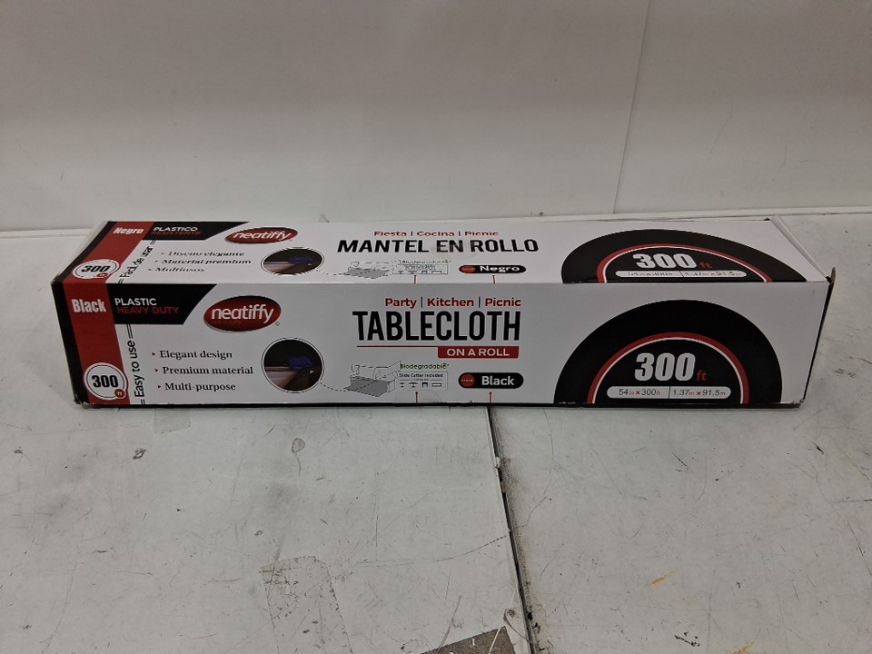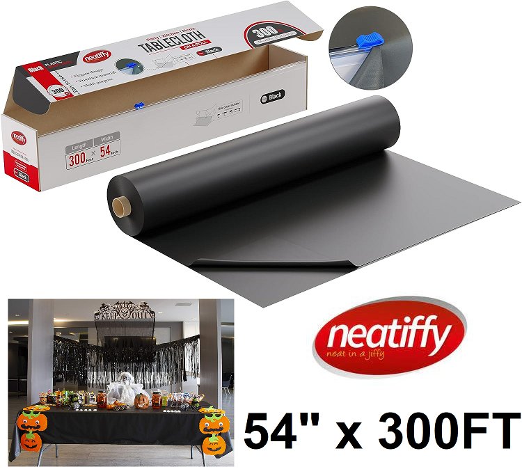 Neatiffy Disposable Plastic Table Cloth Roll With Slide Cutter - 54" x 300 Ft - BLACK