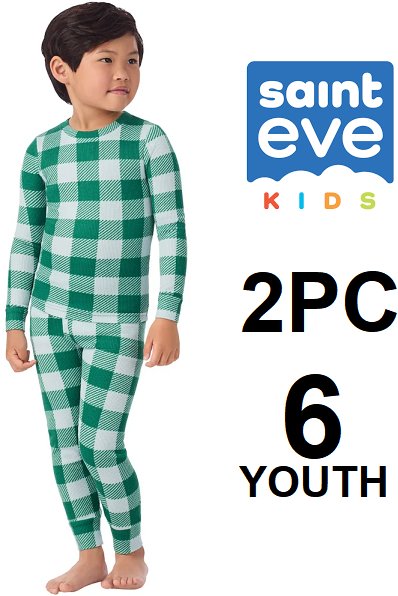 2PC boys Saint Eve Kids long sleeve shirt and pants pajama set - 6 - blue / green plaid (style: k290161)