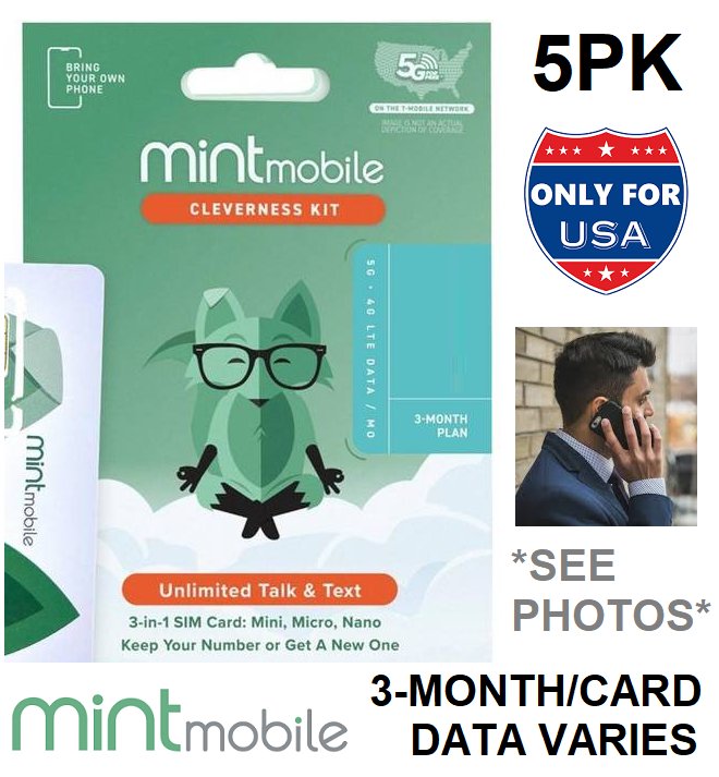 Bundle made up of 2x unlimited data cards, 2x 5gb data cards & 1x 15gb data card. Please be aware that these items arrived brand new and sealed but were opened by staff to confirm the items had not expired. The items the buyer receives will be new but opened by staff. Unable to test due to the nature of the item.