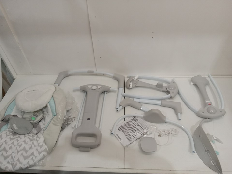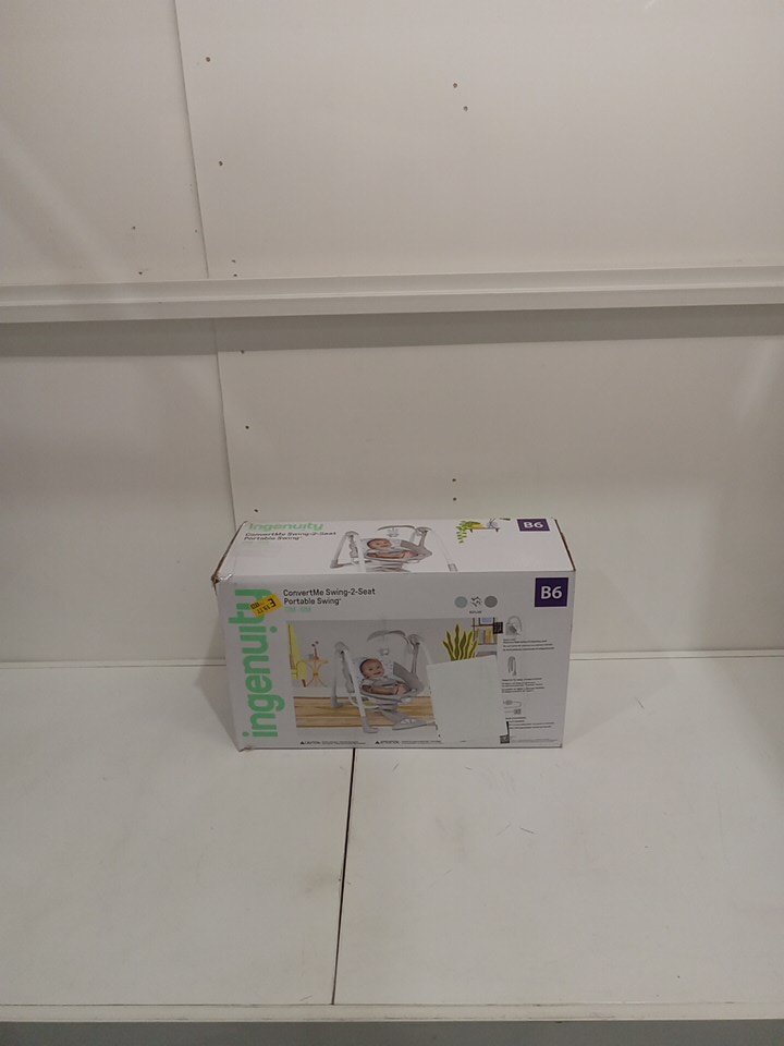 Ingenuity 2-in-1 convertme compact portable baby swing & seat with vibrations & nature sounds - battery powered - 20lbs max- raylan theme/grey (model: ‎12189)