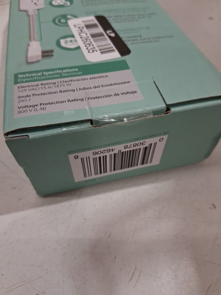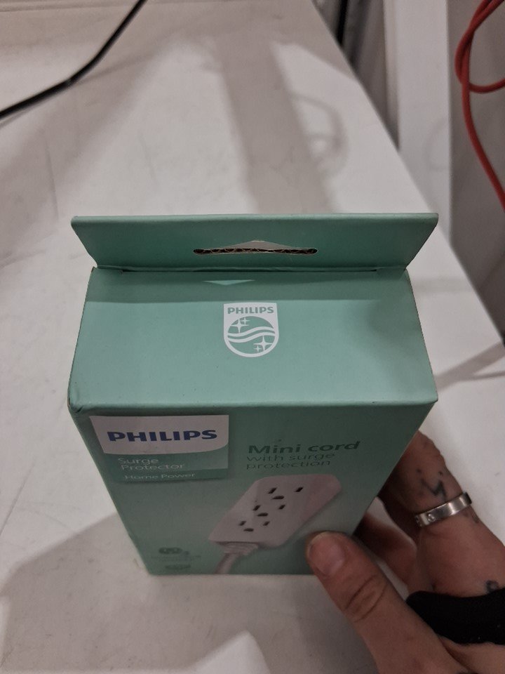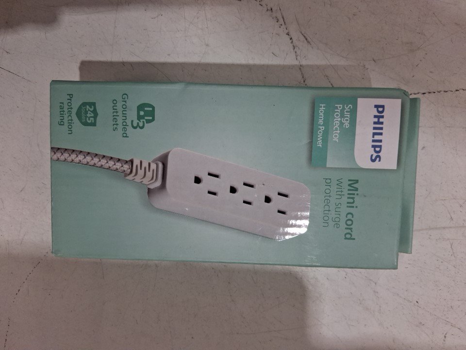 Philips Mini Cord with Surge Protection, 3 Outlets, and Flat Plug - 245J Protection - White (Model: SPP8272WC/37)