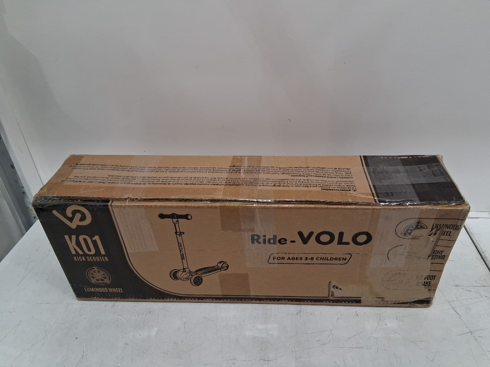 KIDS RideVOLO K01 Kick Scooter Tri PU FLASHING Wheeled FOR 3-8 AGES- 6" - 110LB Capacity - Black/Blue