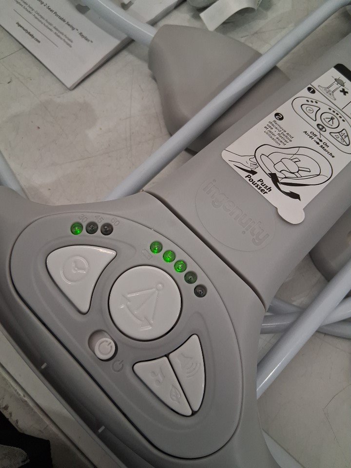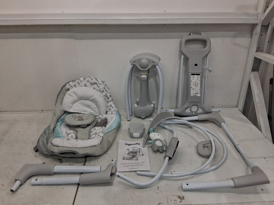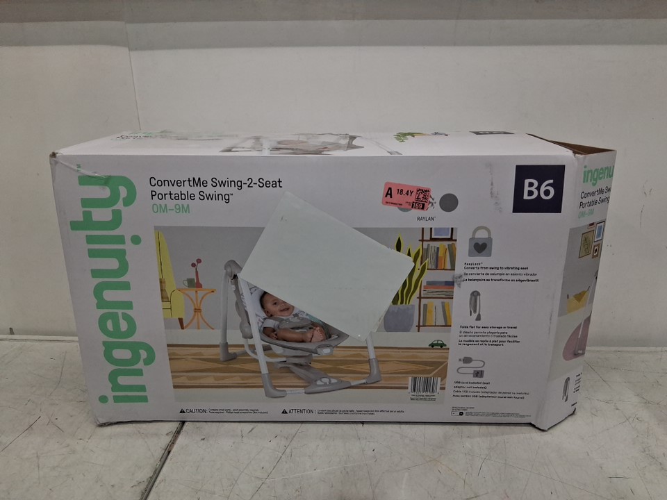 Ingenuity 2-in-1 convertme compact portable baby swing & seat with vibrations & nature sounds - battery powered - 20lbs max- raylan theme/grey (model: ‎12189)