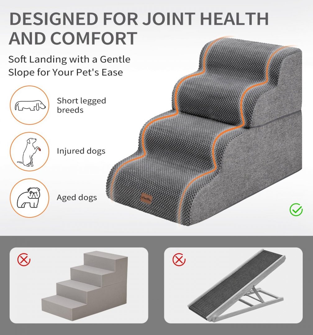 made4pets 4-step foam pet stairs with removable cover - 19.7" x 28.3" x 15.7" - Grey (model: MAWW0198GY)