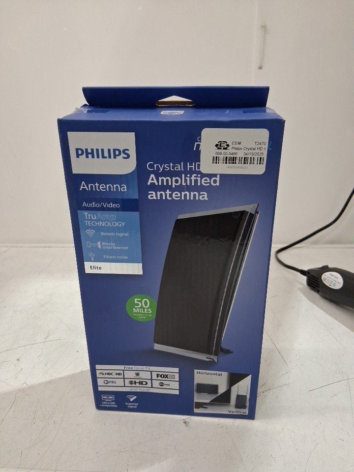 Philips Crystal Amplified Indoor TV Antenna, Extendable Dipole Rabbit Ears, 4K 1080P VHF UHF, Long Range, Amplifier Signal Booster, Digital HDTV Antenna, Smart TV Compatible, (MODEL: SDV3237N/27)