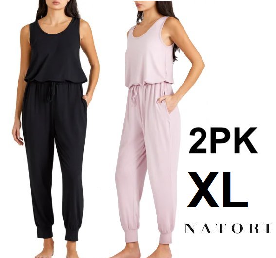 2PK Women's Natori Soft Touch and Comfortable Jumpsuit - extra large - Black/Pink (STYLE:2347773)