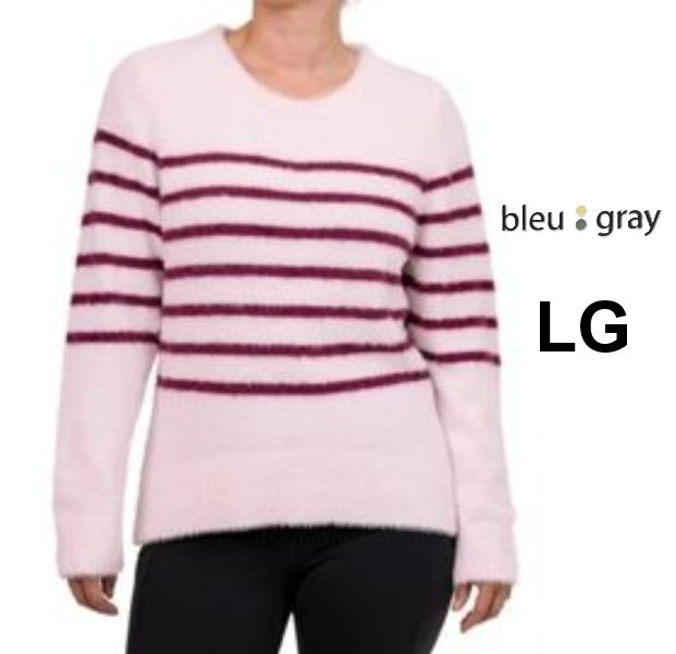 WOMEN'S BLEU GREY EYELASH STRIPED CREW NECK SWEATER - LARGE - PINK RED (STYLE:3815502)