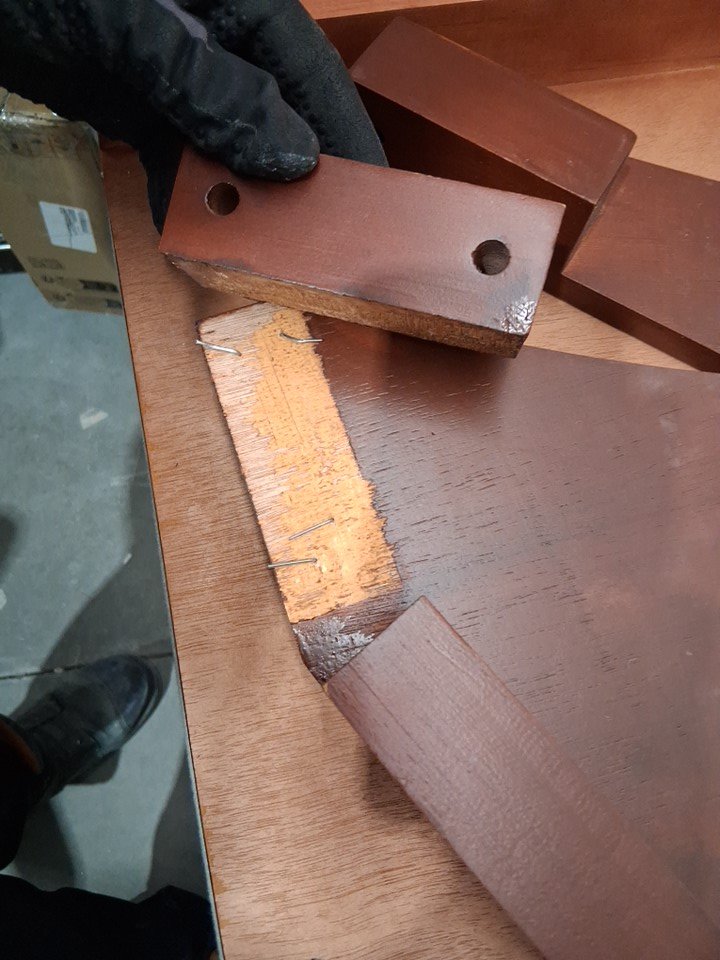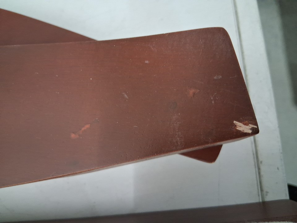item has scratch / scuff marks indicating prior use one of the feet of the ramp has fallen off and there is nails sticking out of the board please see last photo