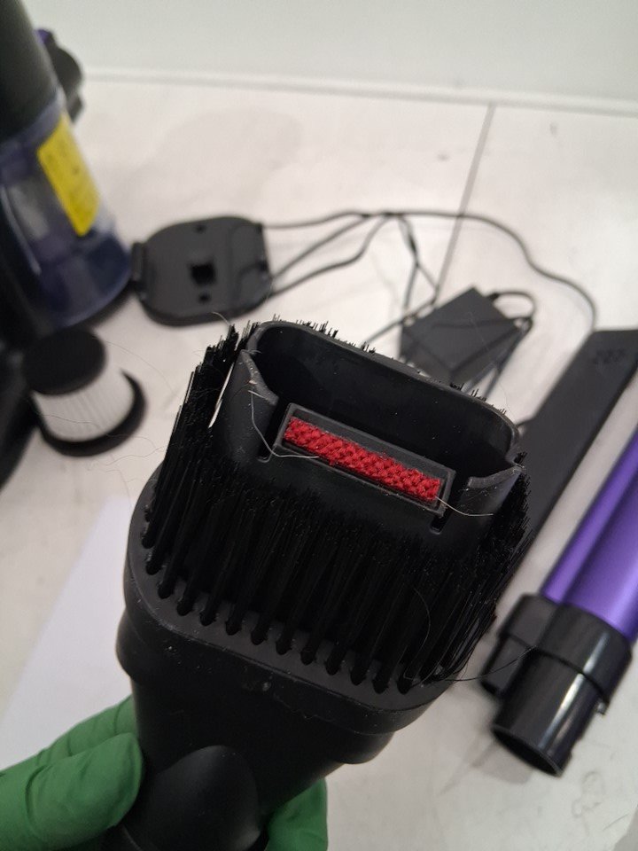 Tested for power, there is some hair and dirt inside vacuum and on attachments, see photos.