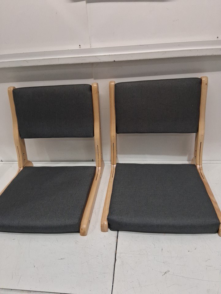 2PK Foldable Meditation Tatami Chair WITH BACK SUPPORT - DARK GREY/ WOOD