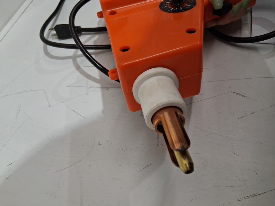 previous use indicated by the copper studs being pre opened and accessed before as well as a small film of dust/buildup over the product. Product is also missing a lot of parts. See image details.