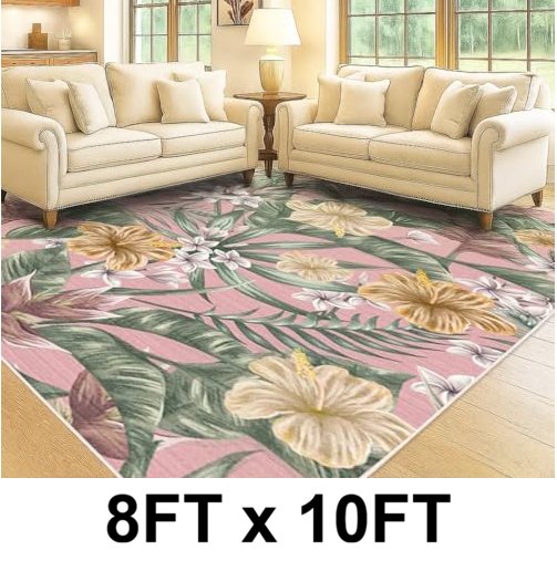 Valyrium Non Slip Soft Washable Area Rug - 8FT x 10FT - Floral Pink Pattern