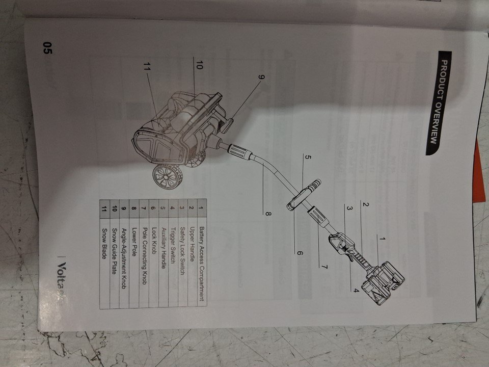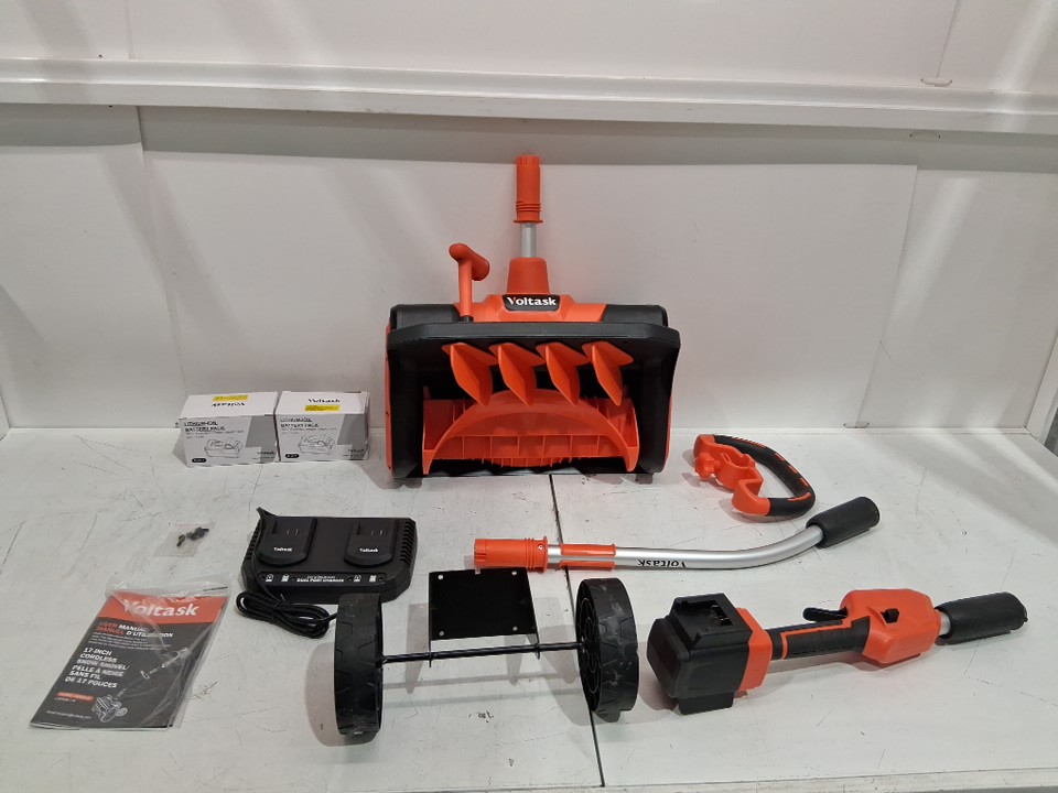 Voltask Cordless Snow Shovel 2 Batteries and Dual Quick Charger - 17" - Orange/Black (model: css008-170OR-USVK)