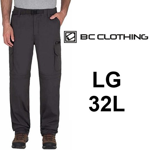 MENS BC Clothing Lightweight Comfort Stretch Cargo Pants - LARGE, 32" LENGTH - DARK GREY (STYLE: 375622)