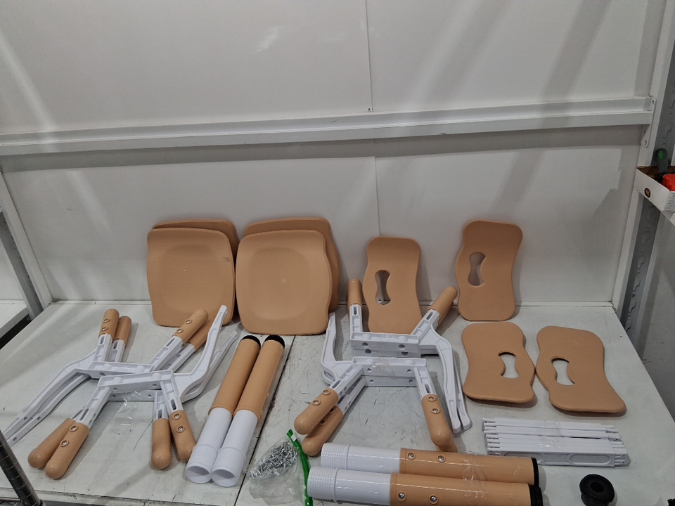 Please note that there are marker markings on 2 of the chair seats & light marks on the table (see photos) from previous light use.