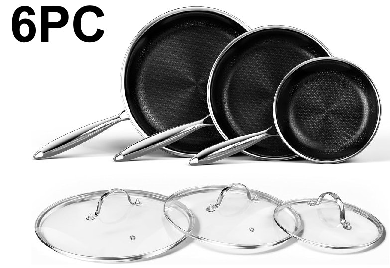 6PC Innerwell Nonstick Titanium Ceramics Stainless Steel Frying Pan Set - 8"/10"/12" - Silver