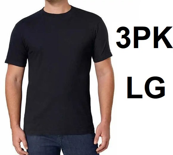 3PK men's Kirkland 100% Cotton Crew Neck T-shirt - LARGE - black (STYLE: 7771718)