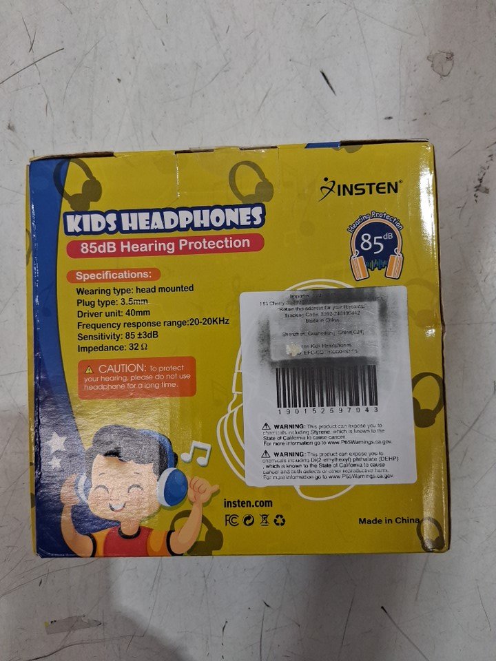 KID'S INSTEN ADJUSTABLE WIRED HEADPHONES - 3.5MM, 85DB VOLUME PROTECTION - BLUE/GREEN