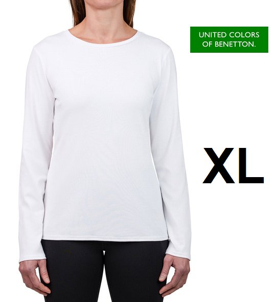 women's united colors of benetton Long Sleeve Supima Cotton Tee - extra large - WHITE (style: 1805197