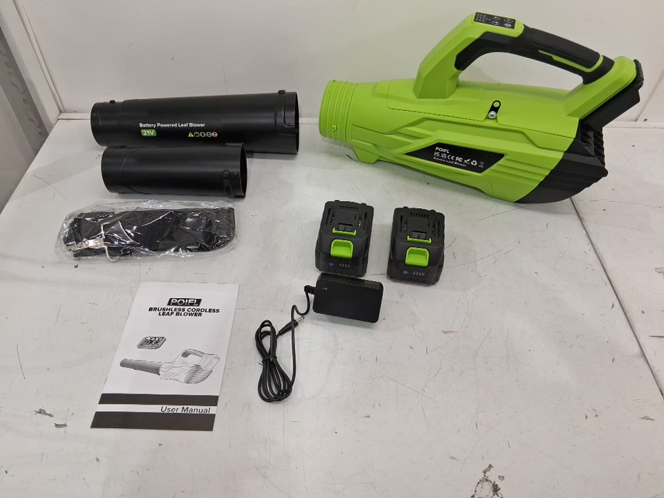 POIFL BRUSHLESS CORDLESS LEAF BLOWER with two 21v batteries - 32000 rpm- GREEN/BLACK