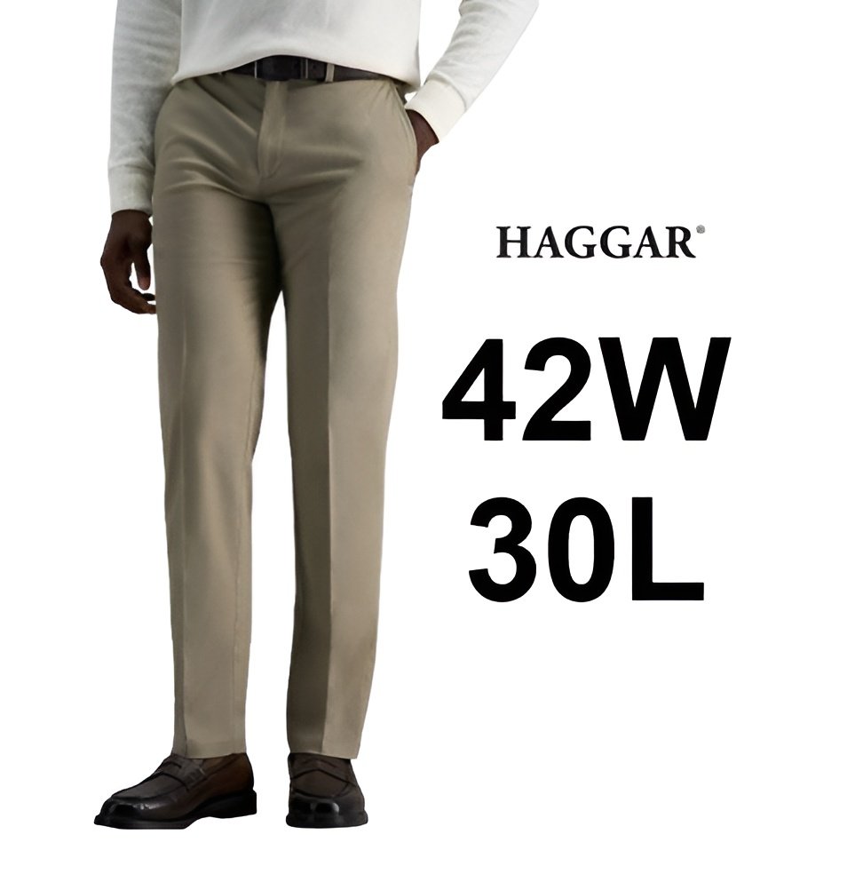 MEN'S HAGGAR Iron Free Premium Khaki Classic-Fit Flat Front Pants - 42w x 30l - taupe - (STYLE: 4127542)