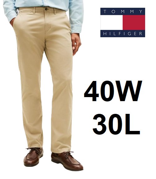 men's tommy hilfiger th flex straight fit chino pants - 40w 30l - khaki
