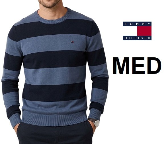 men's tommy hilfiger crew neck pullover sweater - medium - navy/blue stripe (style: i719896