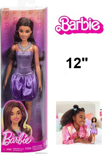 kids mattel Barbie Fashionistas Doll in Sequined Purple Dress & Silvery Accessories - 12" - #234 - purple/multicolor (MODEL:HYT92)